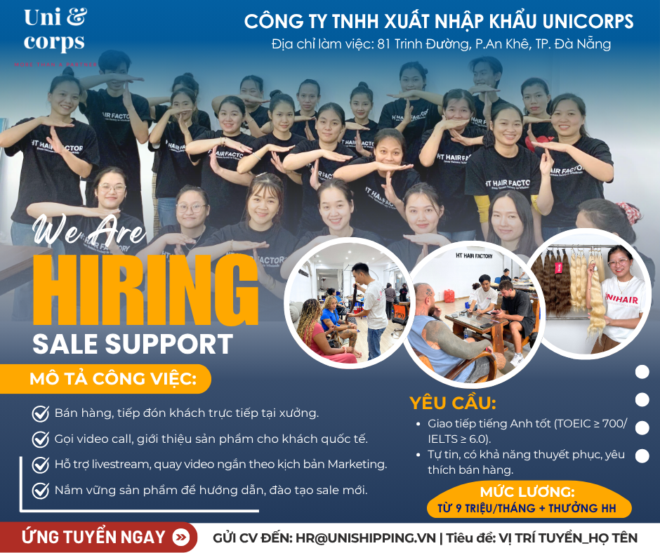 Lĩnh vực hoạt động: Sản xuất, gia công và xuất khẩu tóc thật 100% ra thị trường quốc tế, với nhà máy đặt tại Đà Nẵng. Thế mạnh: Sở hữu đội ngũ thợ lành nghề, quy trình sản xuất hiện đại, đảm bảo chất lượng – độ bền – tính thẩm mỹ hàng đầu. Cam kết: Mang đến các sản phẩm chất lượng cao, đạt chuẩn quốc tế và làm hài lòng đối tác toàn cầu.